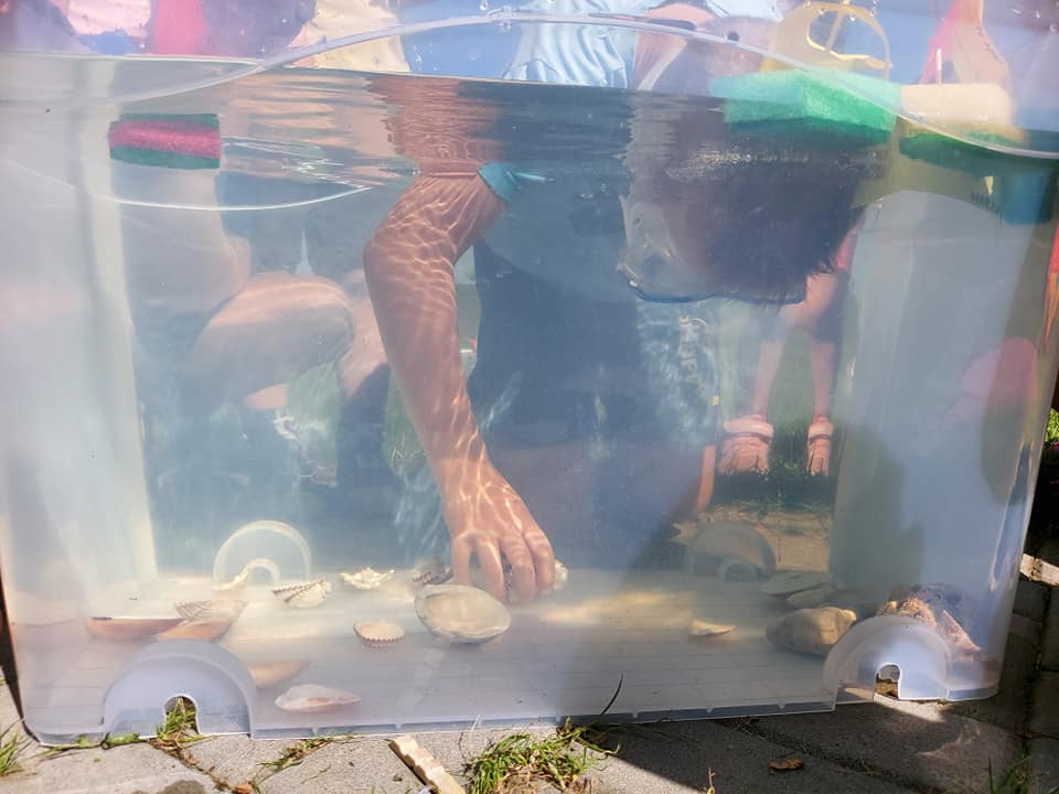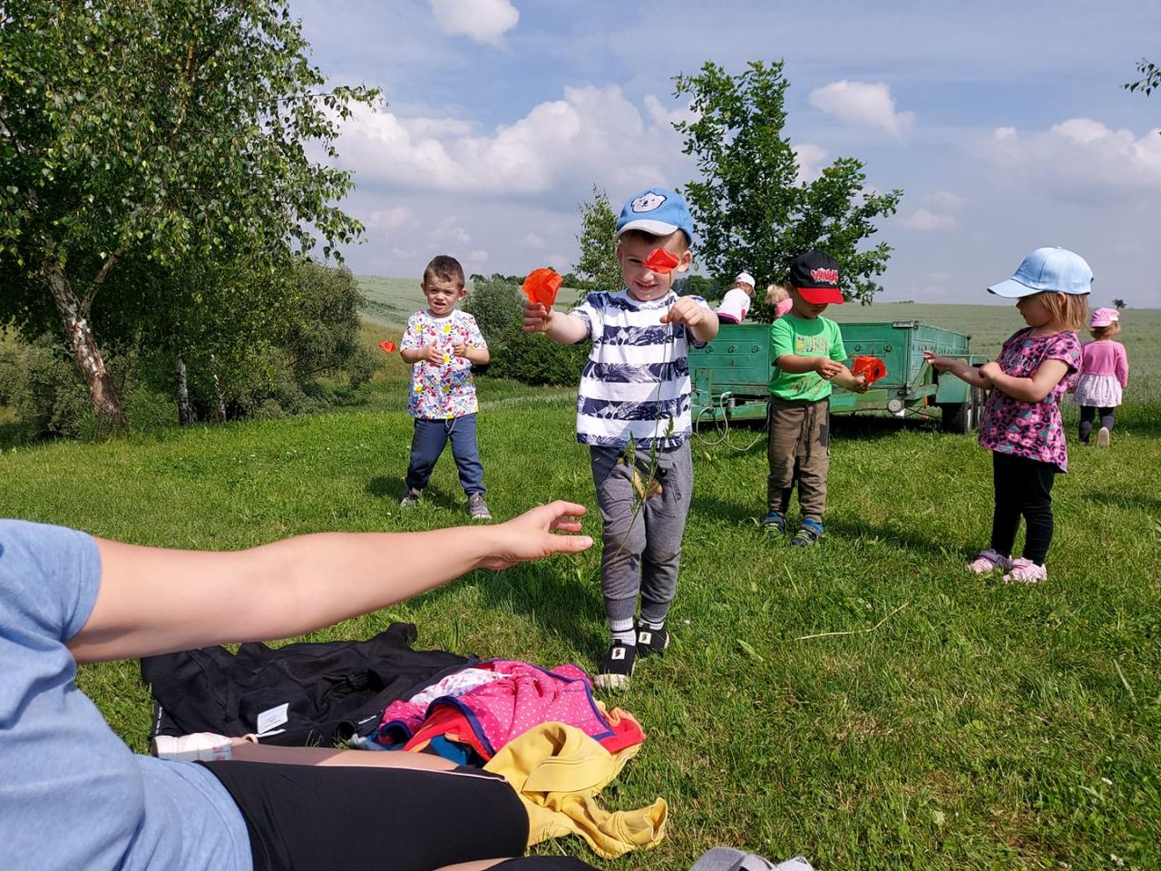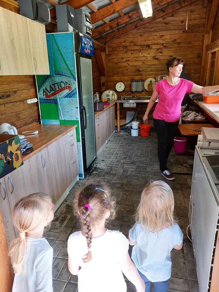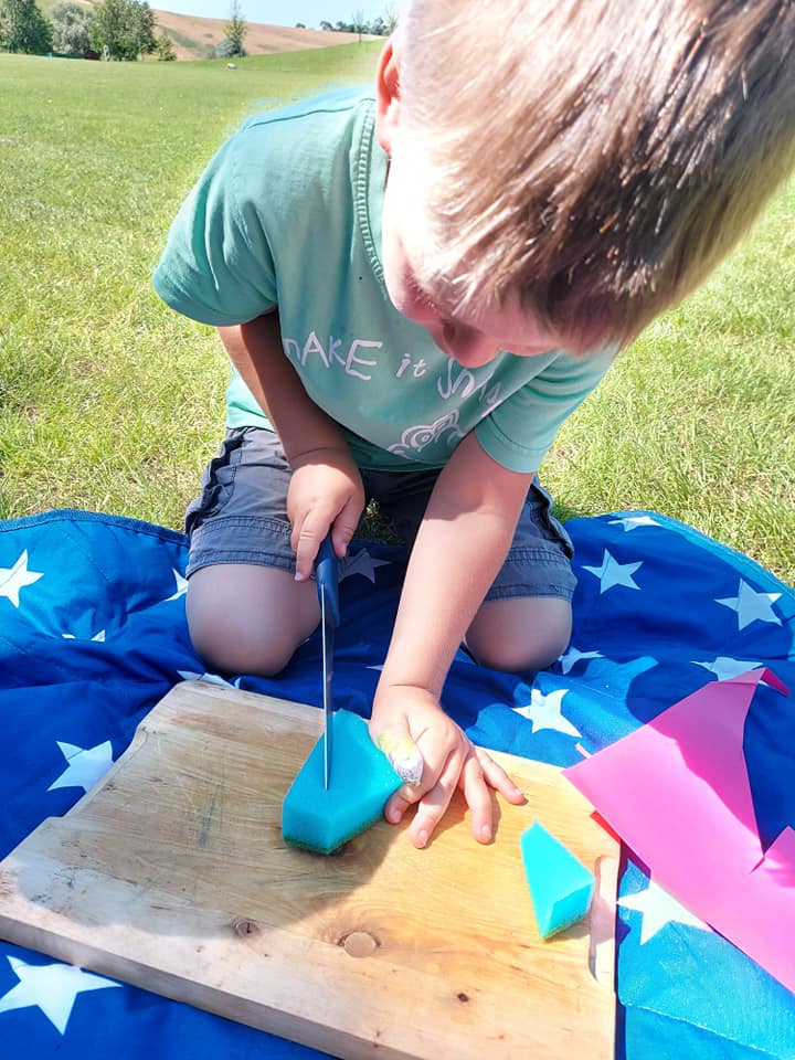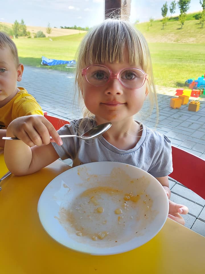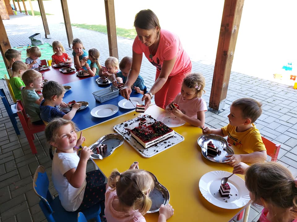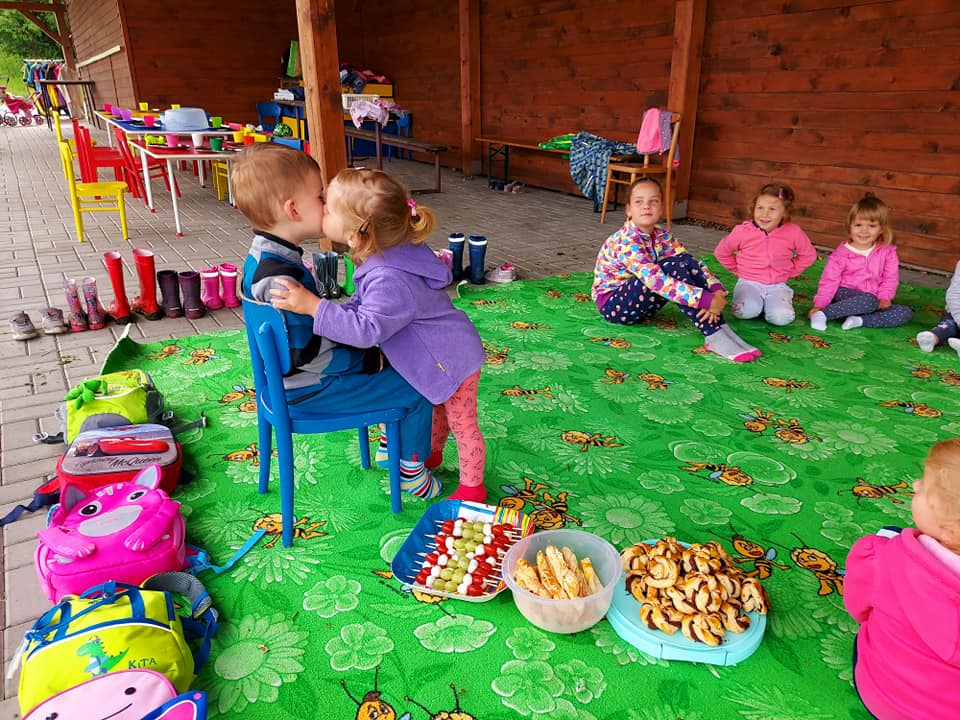 Červenec patřil naší školce v přírodě. S dětmi jsme se ráno sešli na obecním úřadě a pak už jsme pobývali až do zavíračky na obecním hřišti. Tam děti i svačily, obědvaly, spinkaly. Samozřejmě to by čas plný her a tvoření. Dle pravidel Ekoškoly si děti samy vybraly pokrm, který si závěrečný den chtějí připravit k obědu. Odhlasovaly si bramborový guláš, rozdělily si úkoly (suroviny, které mají donést a činnosti, kdo co bude dělat). Myslím, že se to moc povedlo. Důkazem byly prázdné talíře.