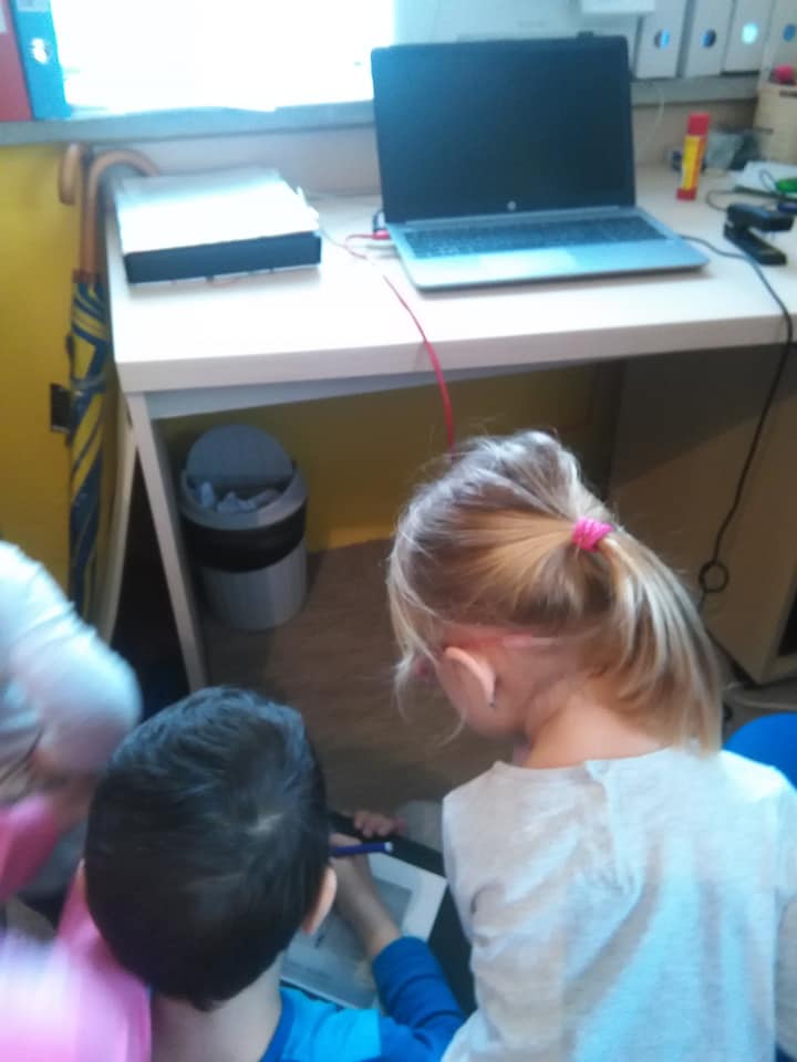 Vyráběli jsme informační tabuli k mezinárodnímu programu Ekoškola. Děti výtvarně ztvárňovaly funkce členů Ekotýmu a pravidla jeho fungování. Pracovali jsme také na analýze tématu Prostředí a Odpady. Děti počítaly květiny v MŠ (máme jich 26), koše na tříděný odpad (těch máme 15 a třídíme na 9 složek). Zamýšlely se i nad materiály, ze kterých jsou naše hračky, nad jejich původem a trvanlivostí.