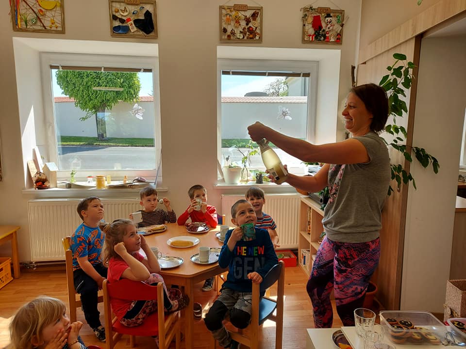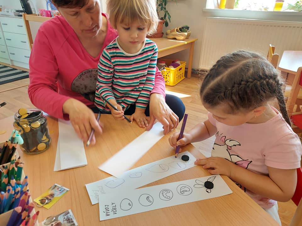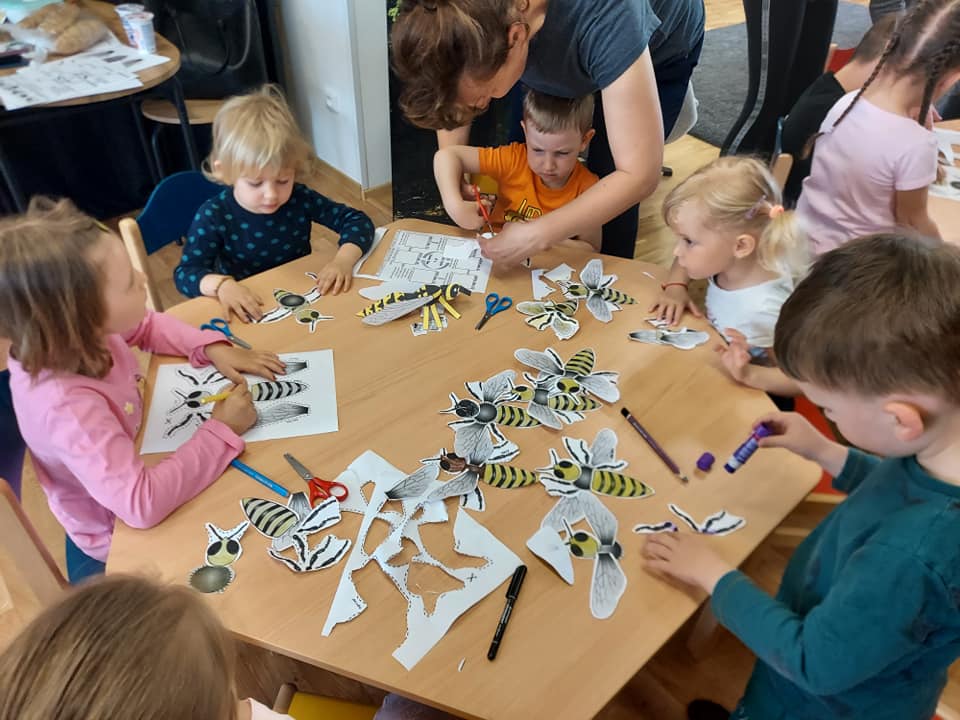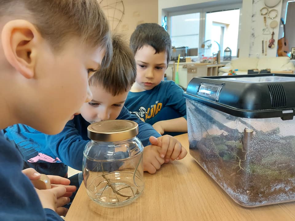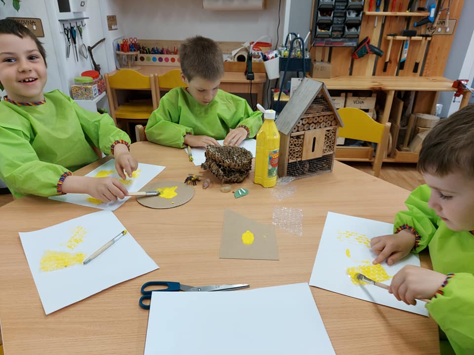 Věnovali jsme se velkému tématu Včely a 20.5. oslavili Světový den včel. Navštívili jsme pana Kundráta, špičkového včelaře, který nám ukázal svůj včelín, úly i pomůcky ke včelaření a na konci exkurze děti ještě odměnil medovými lízátky a obrázky.