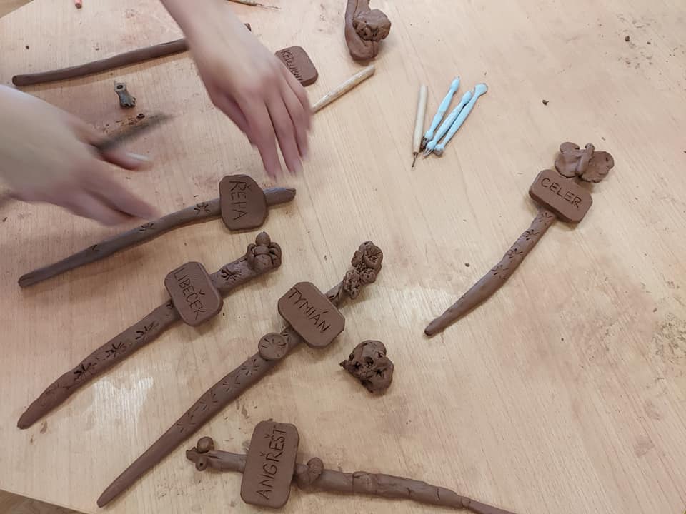 V keramice jsme vyráběli zápichy k bylinkám a k zelenině a vyrobili jsme si také včelí úly.