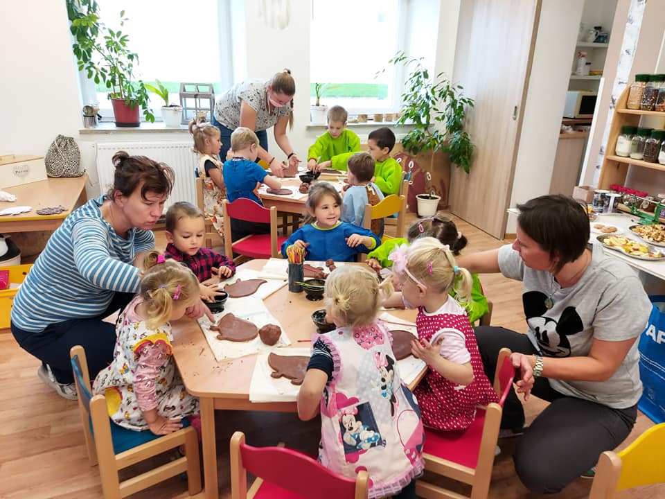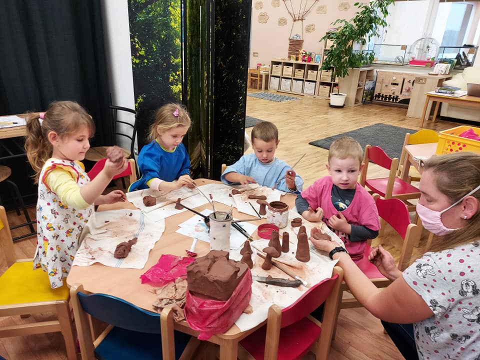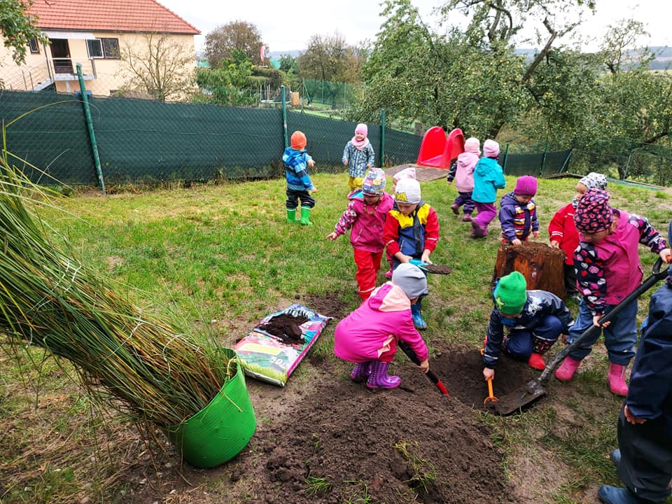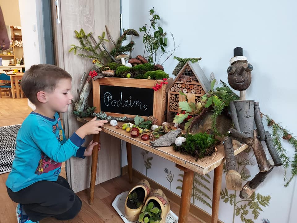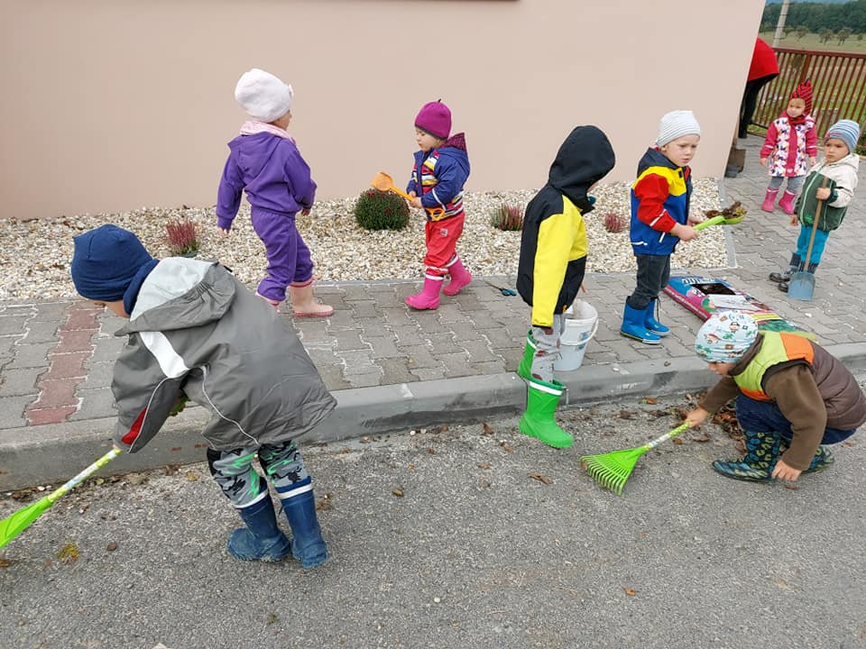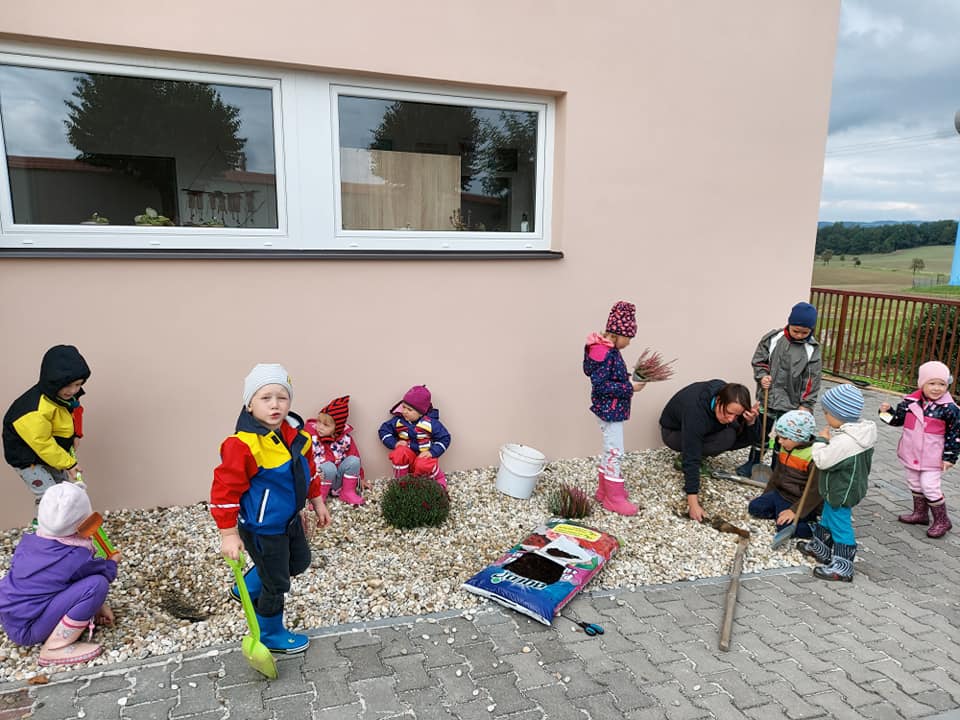 V říjnu jsme začali znovuvytvářet centra aktivit, tzv. koutky. Máme jich 15 a pomalu v nich učíme děti pracovat. Pořád ještě koutky přehazujeme, doplňujeme nábytek, zkoušíme a vymýšlíme vše seskupit tak, aby to bylo co nejsmysluplnější. Děti jsou našimi velkými pomocníky a opravdu nám pomáhají a všechno tvoří společně s námi. Přibyl nám do školky Ťip a Ťop - dvě veselé andulky. Začal nám kroužek keramiky s paní Frydrychovou, která za dětmi každý týden dojíždí. Pomalu jsme se vrhli na zvelebování okolí školky. Pomáhá nám projekt Malý zahradník, do kterého jsme zapojeni. Upravili jsme prostory před školkou a vysadili jsme pár rostlin i na školkové zahradě. Dorazilo nám prvních několik prvků z plánované přírodní zahrady – vyvýšené záhony, králíkárna, kuchyňka, lavečky a výukový panel, který jsme si s kolegyní a dětmi dotvořili dle naší představy. Taky jsme oslavili Den stromů, upekli si dýňové muffiny a vydlabali dýni. Mnoho akcí jsme kvůli aktuálním hygienickým opatřením museli zrušit. Ale rozhodně se nenudíme a máme co dělat ????