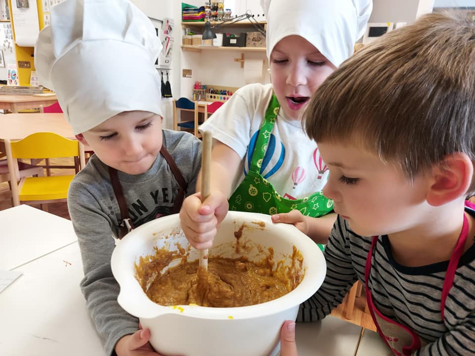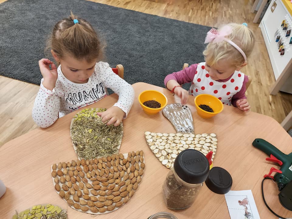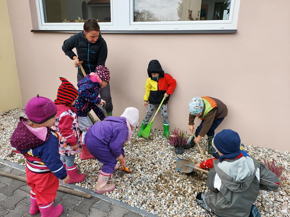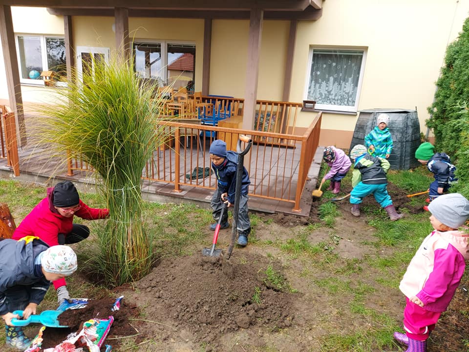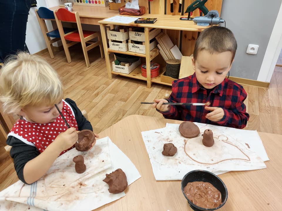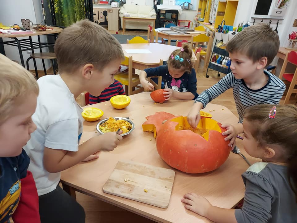 V říjnu jsme začali znovuvytvářet centra aktivit, tzv. koutky. Máme jich 15 a pomalu v nich učíme děti pracovat. Pořád ještě koutky přehazujeme, doplňujeme nábytek, zkoušíme a vymýšlíme vše seskupit tak, aby to bylo co nejsmysluplnější. Děti jsou našimi velkými pomocníky a opravdu nám pomáhají a všechno tvoří společně s námi. Přibyl nám do školky Ťip a Ťop - dvě veselé andulky. Začal nám kroužek keramiky s paní Frydrychovou, která za dětmi každý týden dojíždí. Pomalu jsme se vrhli na zvelebování okolí školky. Pomáhá nám projekt Malý zahradník, do kterého jsme zapojeni. Upravili jsme prostory před školkou a vysadili jsme pár rostlin i na školkové zahradě. Dorazilo nám prvních několik prvků z plánované přírodní zahrady – vyvýšené záhony, králíkárna, kuchyňka, lavečky a výukový panel, který jsme si s kolegyní a dětmi dotvořili dle naší představy. Taky jsme oslavili Den stromů, upekli si dýňové muffiny a vydlabali dýni. Mnoho akcí jsme kvůli aktuálním hygienickým opatřením museli zrušit. Ale rozhodně se nenudíme a máme co dělat ????